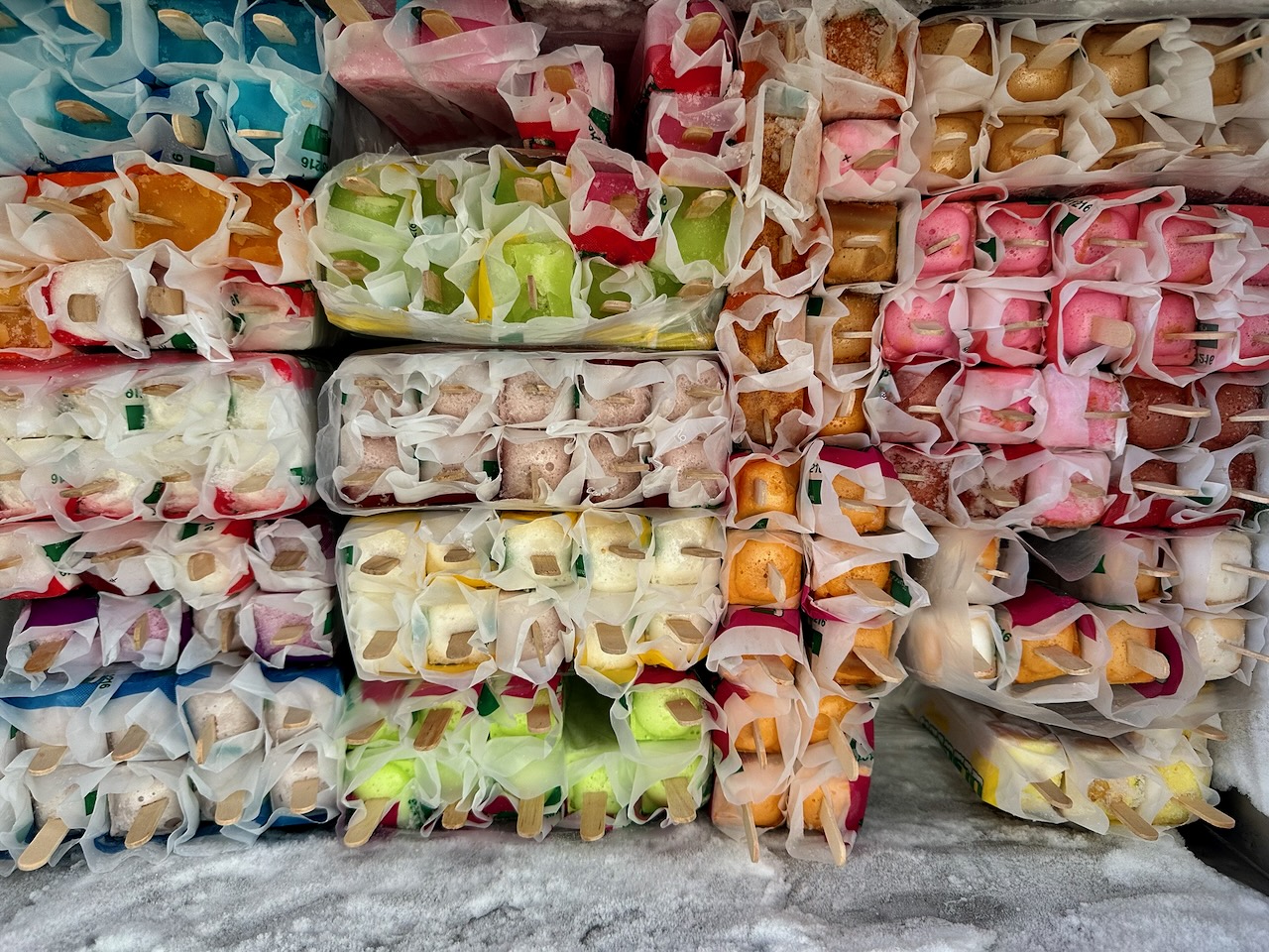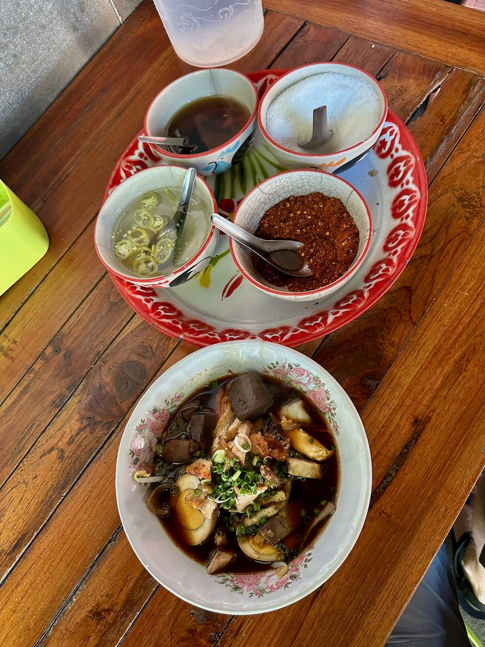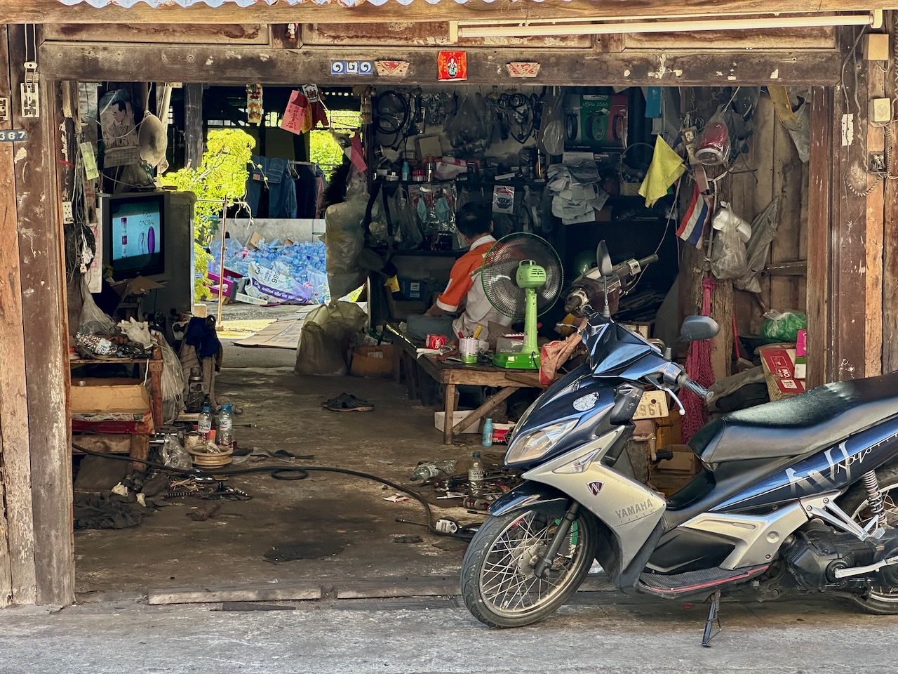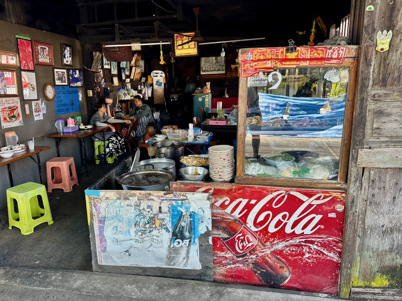 Die erste Station wäre der Edelsteinmarkt, der ist aber nur am Wochenende geöffnet. Darum beginne ich mit Pa Tai Egg Cake, wo feine Madeleines hergestellt werden. Das Community Learning Center ist geschlossen, das Café lasse ich aus, aber beim Luang Rajamaitri Historic Inn schaue ich rein, wo es einige Schätze zu sehen gibt aus den Zeiten der East Asiatic Company. Nicht weit davon ist der Rocket Ice Cream Shop, welcher hier seit 50 Jahren Glacé verkauft. Ich probiere das Durian-Eis (15 Baht).