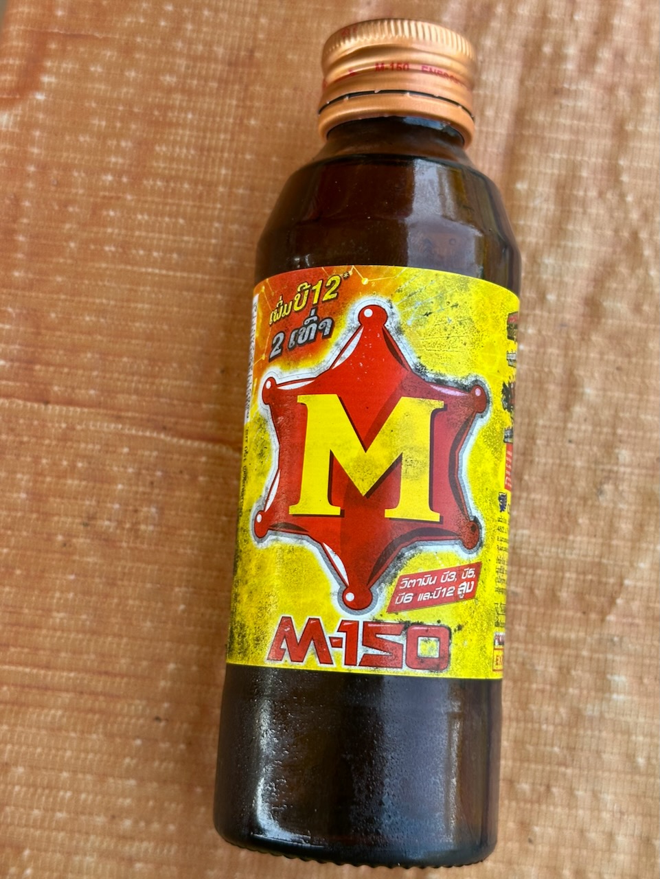 Ich bin froh, zeitig unterwegs zu sein, so ist es noch nicht heiss. Mr. Vieng hat zwar behauptet, es gehe alles abwärts nach Pakse, aber es geht etwa so abwärts wie vom Bachtel nach Stäfa: da liegen ein paar Hügel dazwischen! Ich mache mal Pause und kaufe ein Fläschchen M-150, das ist das thailändische RedBull. Und eine Cola.