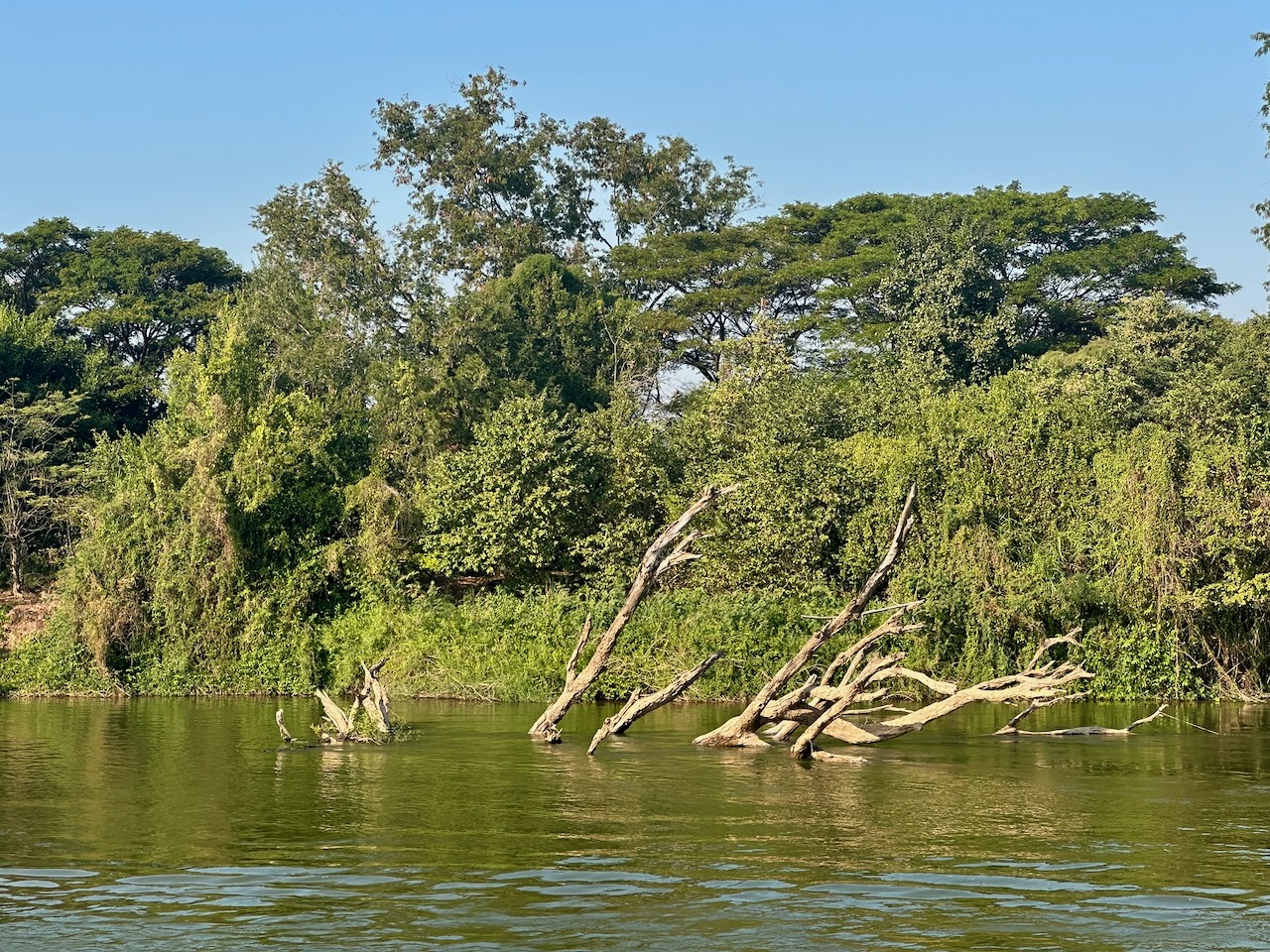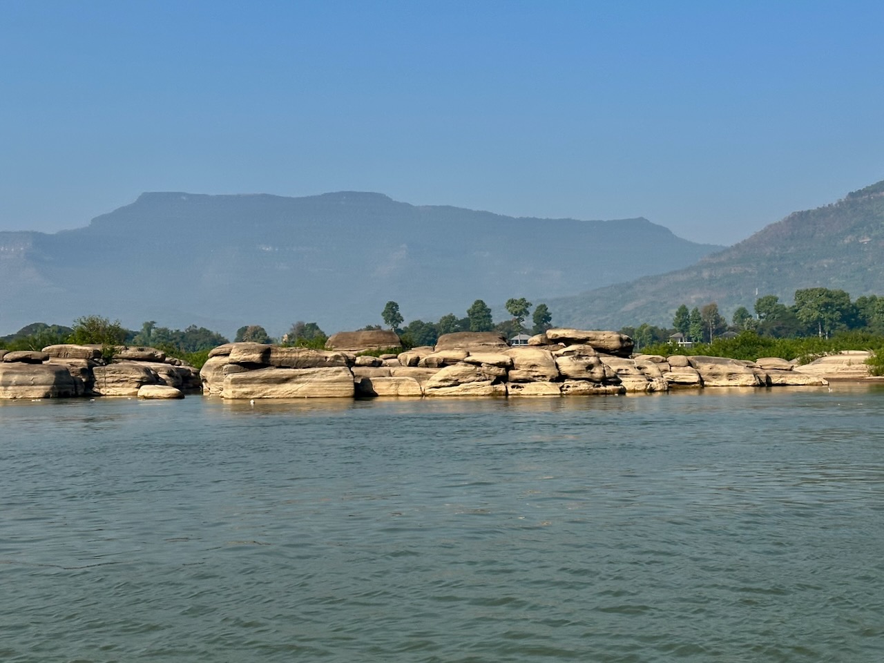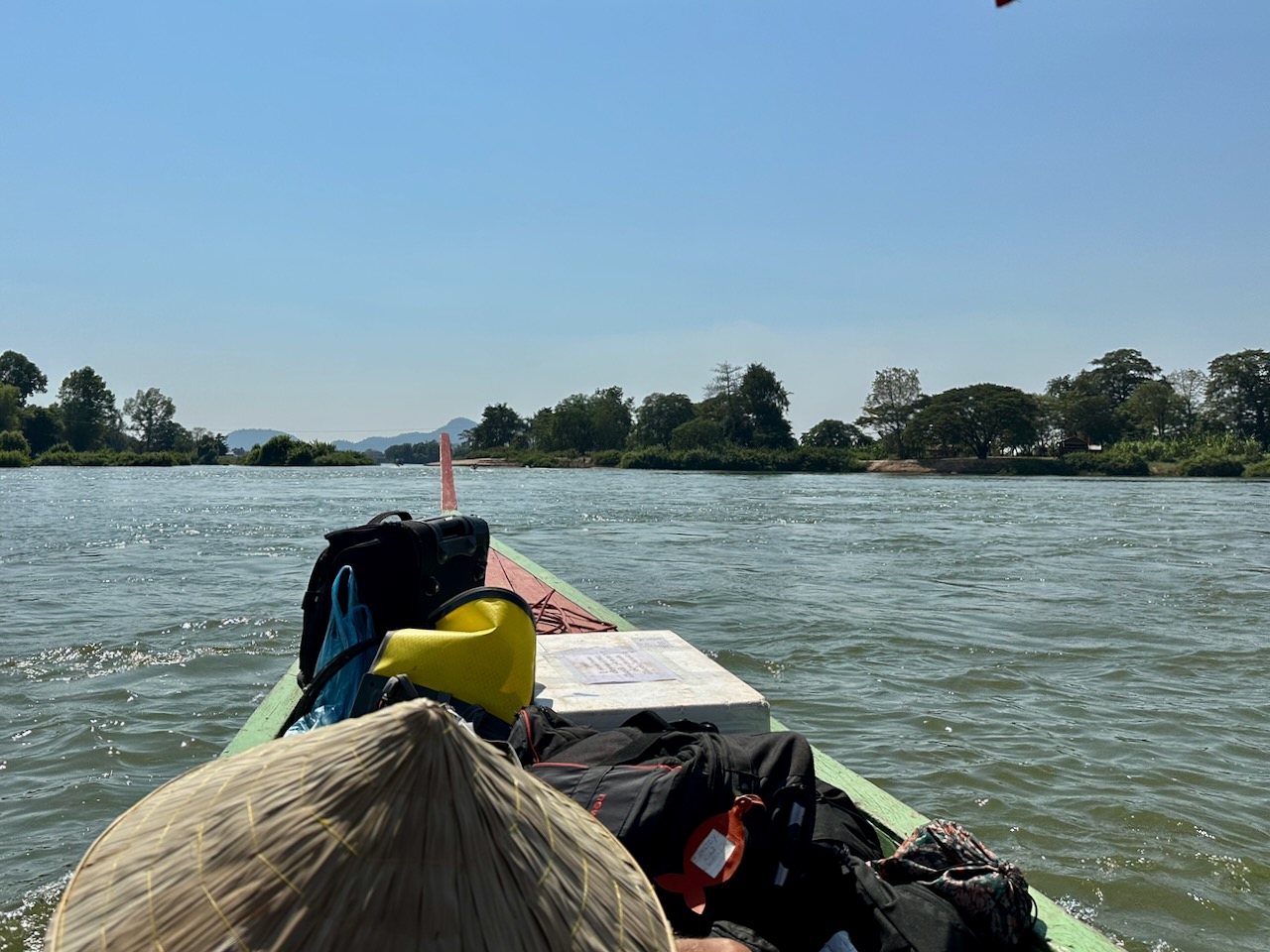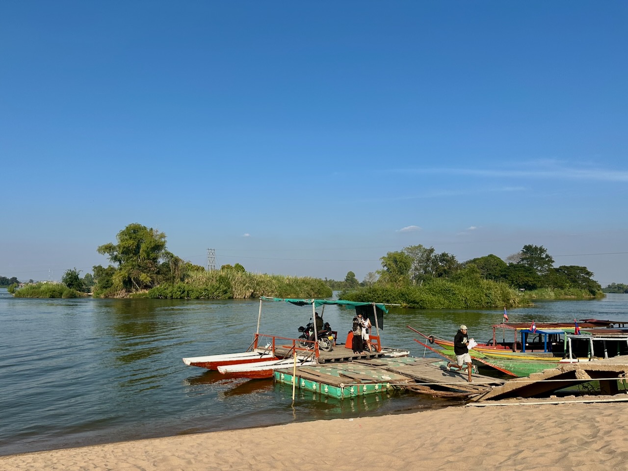 Diesmal kann ich direkt beim Hotel ins Boot steigen. Zusammen mit einem Franzosen, der nach Don Khon fährt, überquere ich den Fluss.