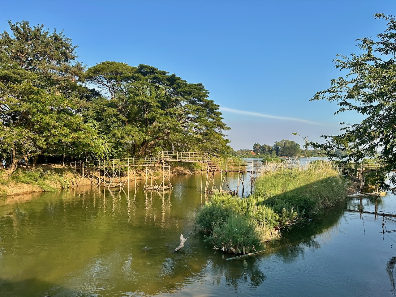 Nach 12 Uhr kommen wir in Nakasong an und fahren mit der Fähre nach Don Det. Zusammen mit einem Schweizer Paar nehme ich ein Tuktuk und erreiche mein Hotel Mr. Tho’s Bungalows.