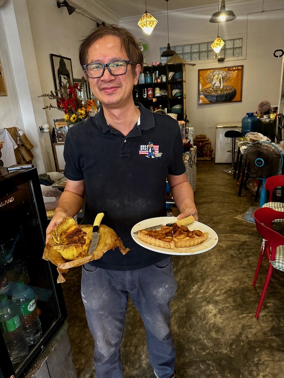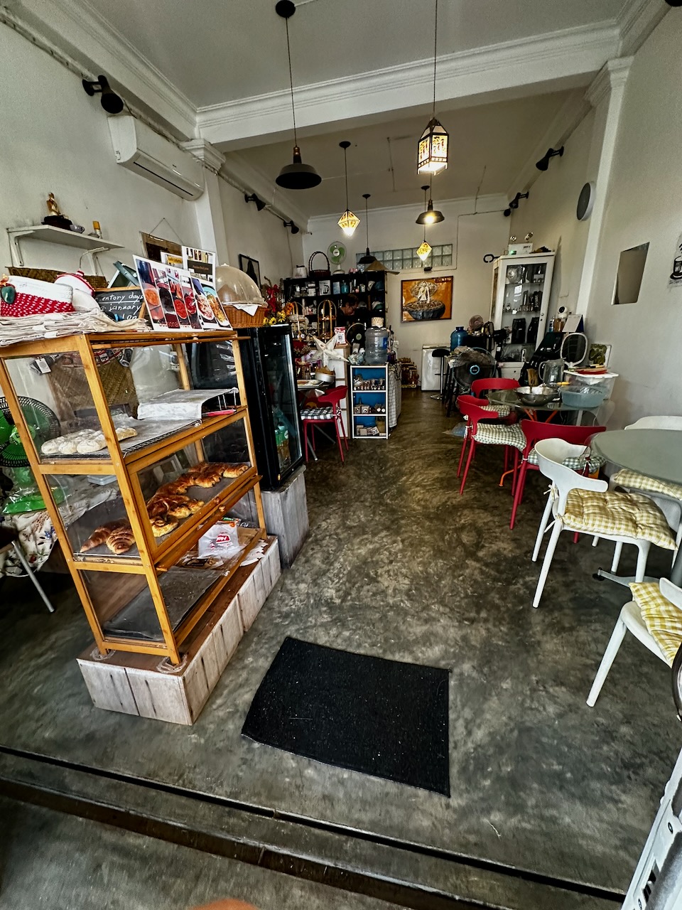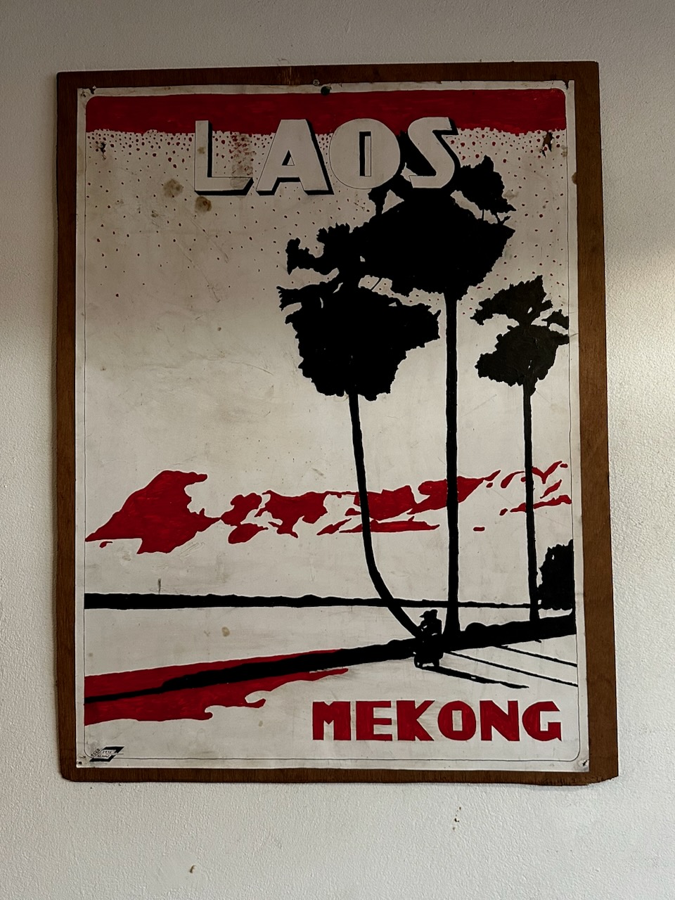 Nach der Dusche besuche ich das Lao Korean Restaurant. Ich habe nämlich vor einer Woche meine Jacke dort vergessen, und die freundliche Besitzerin hat sie für mich aufbewahrt. Ich bleibe gleich zum Essen da. Die Suppe mit Seafood (ich habe den Namen vergessen) ist köstlich. Zum Kaffee gehe ich in die 100% Arabica Bakery, wo der Kaffee aus der eignen Farm auf dem Bolaven Plateau stammt. Die Backwaren werden gleich hier von Hand hergestellt, und der Besitzer Jacques ist überaus freundlich und gibt mir viele Erklärungen. Er kennt sich auch gut mit den vier Sprachregionen der Schweiz aus. Die Poster an der Wand sind von seinem Freund Jean Claude, einem pensionierten Welschen, der auf Don Khon lebt.