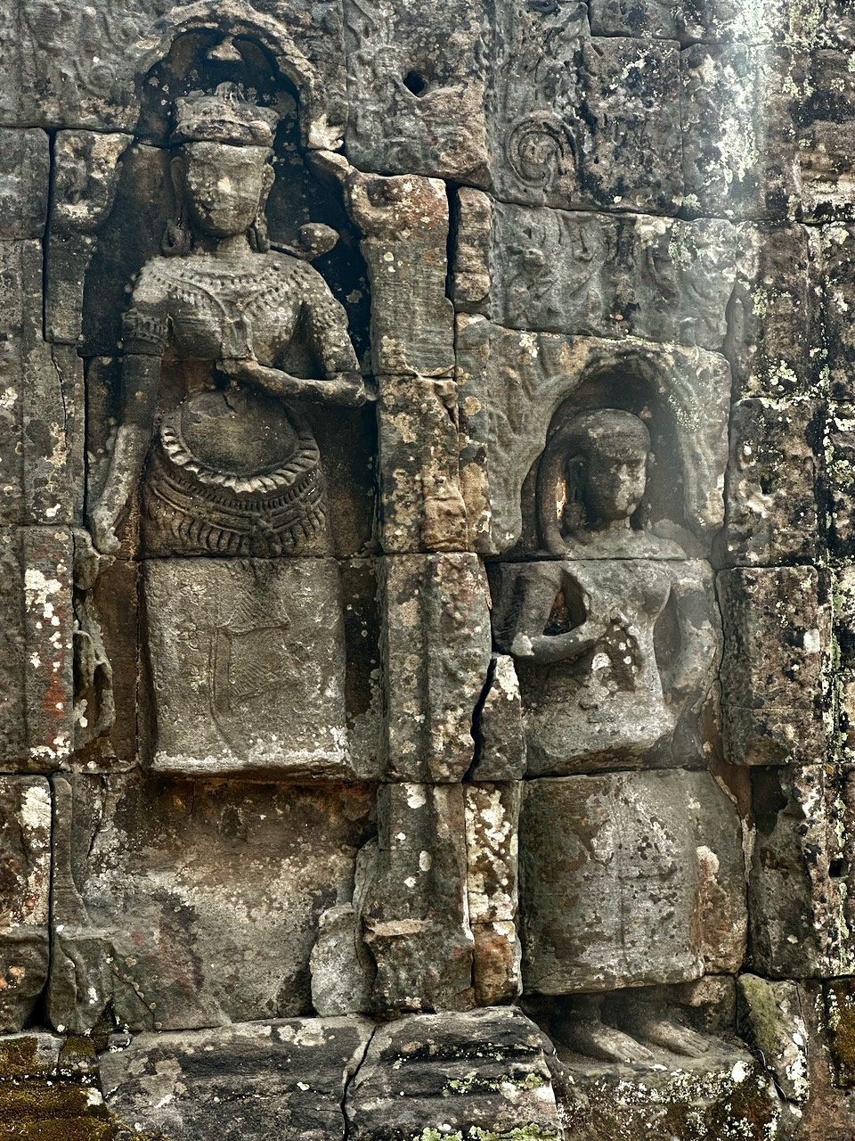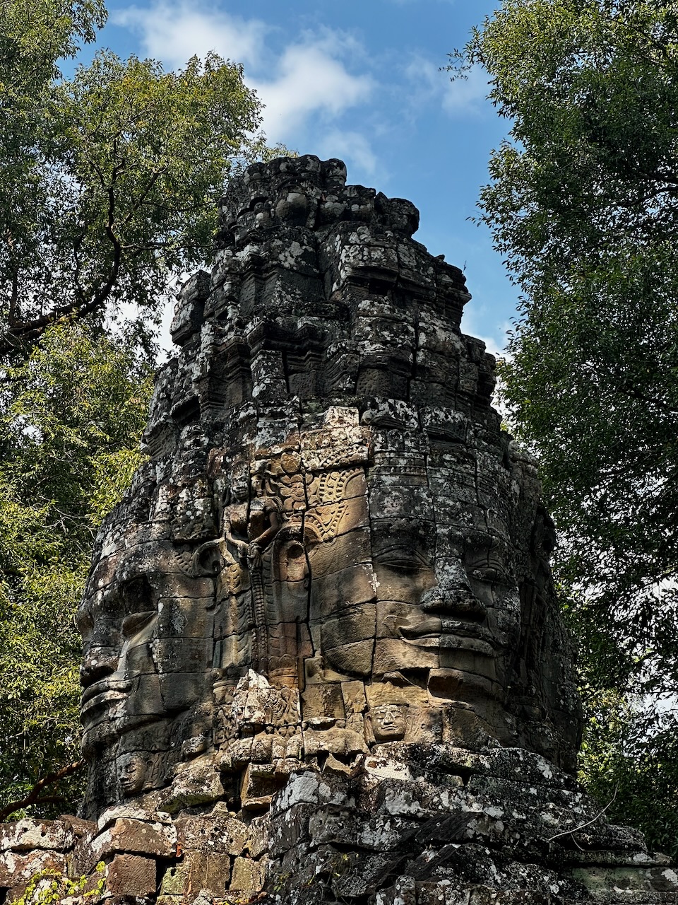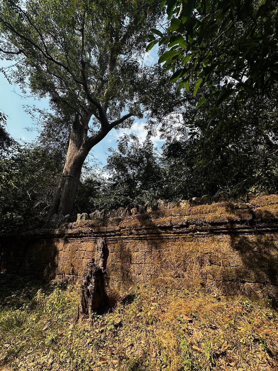 Ich fahre weiter Richtung Angkor Wat. Hier führt die Strasse oft durch Wälder, was bei diesen Temperaturen angenehm ist. Beim Haupteingang biege ich rechts ab, da ich keine Eintrittskarte habe. Ich folge verschiedenen Strassen und lande bald auf einem Wander/Radweg, der sehr angenehm durch das grosse Gebiet führt. An einem Stand trinke ich Kokoswasser. Die Besitzerin ist auch nicht glücklich, wie die Geschäfte gehen. Gestern hätte sie 10$ eingenommen und heute sei ich der erste Kunde. Das ist hart. Sie schenkt mir für die Weiterfahrt zwei Bananen. Die am wenigsten haben, sind am grosszügigsten!