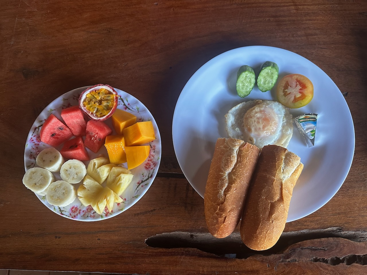 Kurz vor Kratie halten wir an für das Mittagessen, der Bus fährt nämlich weiter als nur Kratie, bis nach Phnom Penh. Ich habe noch keinen Hunger. Bald setzen wir die Fahrt fort und kommen nach 12 Uhr in Kratie an.