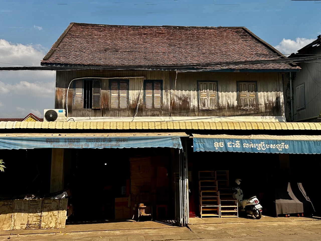 Von der Busstation sind es nur 100m zu meinem Hotel Nomad. Ich beziehe mein Zimmer und spaziere zum Mekong. Der ist sehr breit. Auf der anderen Seite liegt die Insel Kaoh Trong. Es ist extrem schwül und warm.