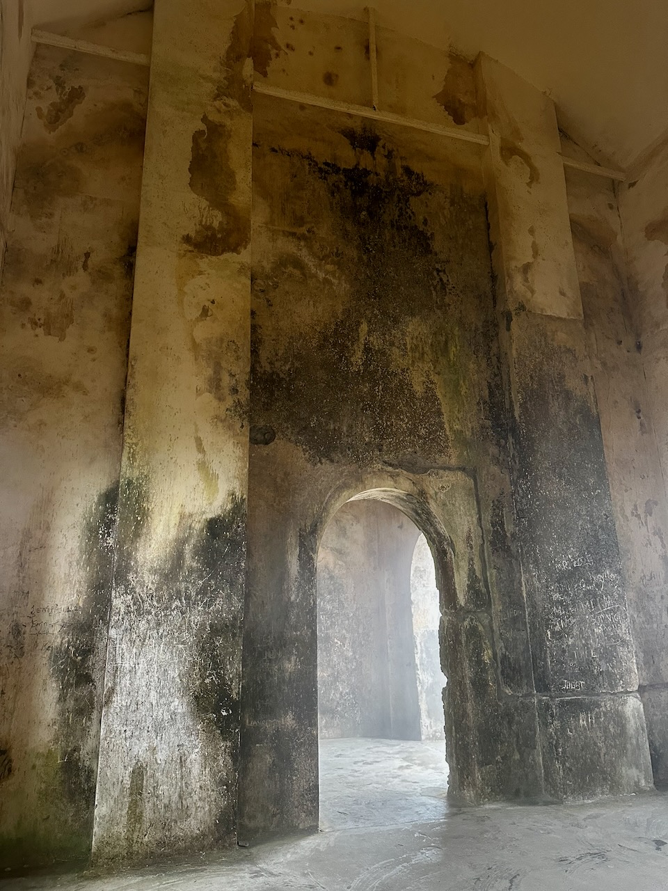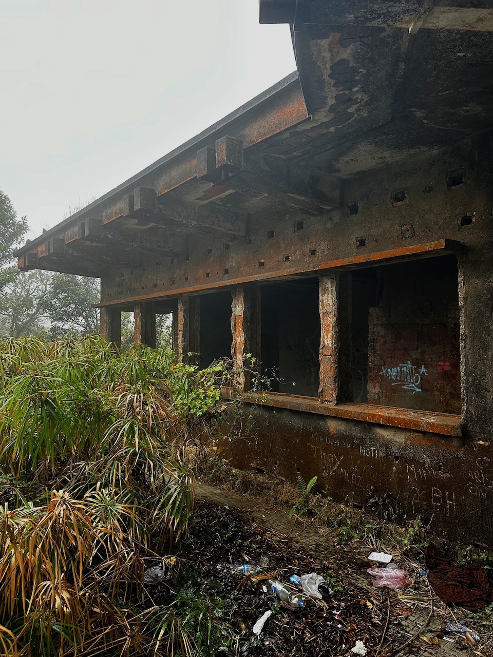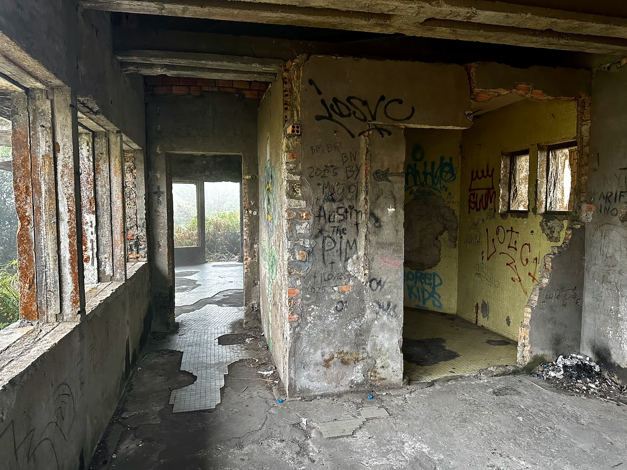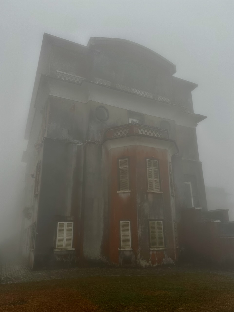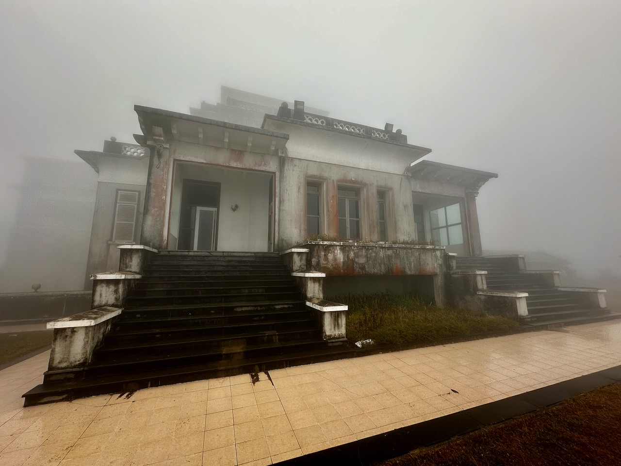 Wir fahren weiter hoch und kommen zum Sommer-Palast des Königs Sihanouk. Er wird Schwarzer Palast genannt, weil er früher mit schwarzem Holz verkleidet war. Heute ein trostloses Abbruchhaus. Auch die alte katholische Kirche ist so ein Objekt. Ein neues Hotel mit Casino wurde gebaut, ist aber zur Zeit geschlossen. Eine grosse Überbauung mit Wohnungen und Läden steht ebenfalls leer. Der Nebel wird immer dichter, es ist auch eher kalt. Das verstärkt natürlich den Eindruck eines Lost Place. Wir warten nicht auf den Sonnenuntergang (der kommt heute nicht) und fahren nach Kampot zurück.