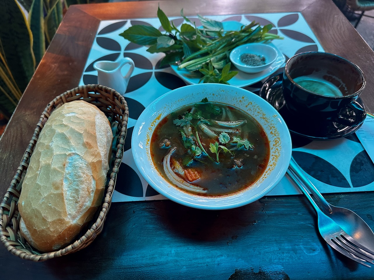 Nun kehre ich zurück zum Hotel, dusche und frühstücke im Everyday Coffee. Ich spiele eine Stunde lang Gitarre, dann packe ich meine Sachen und bezahle die Unterkunft. Um 11 Uhr kann ich den Bus nach Kep besteigen.