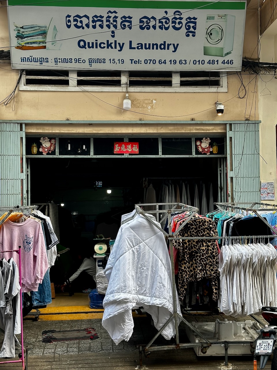 Ich beziehe mein Zimmer, dusche und bringe meine Wäsche zur Wäscherei Quickly Laundry. Preis: 1$/kg. Dann esse ich im Ali Baba Prosto Restaurant.