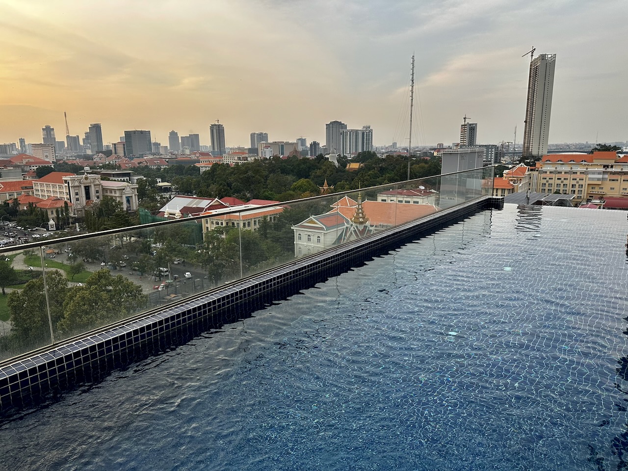 Im Hotel schaue ich mir noch den Rooftop-Pool und die Aussicht an.