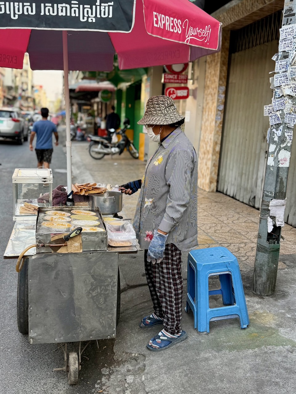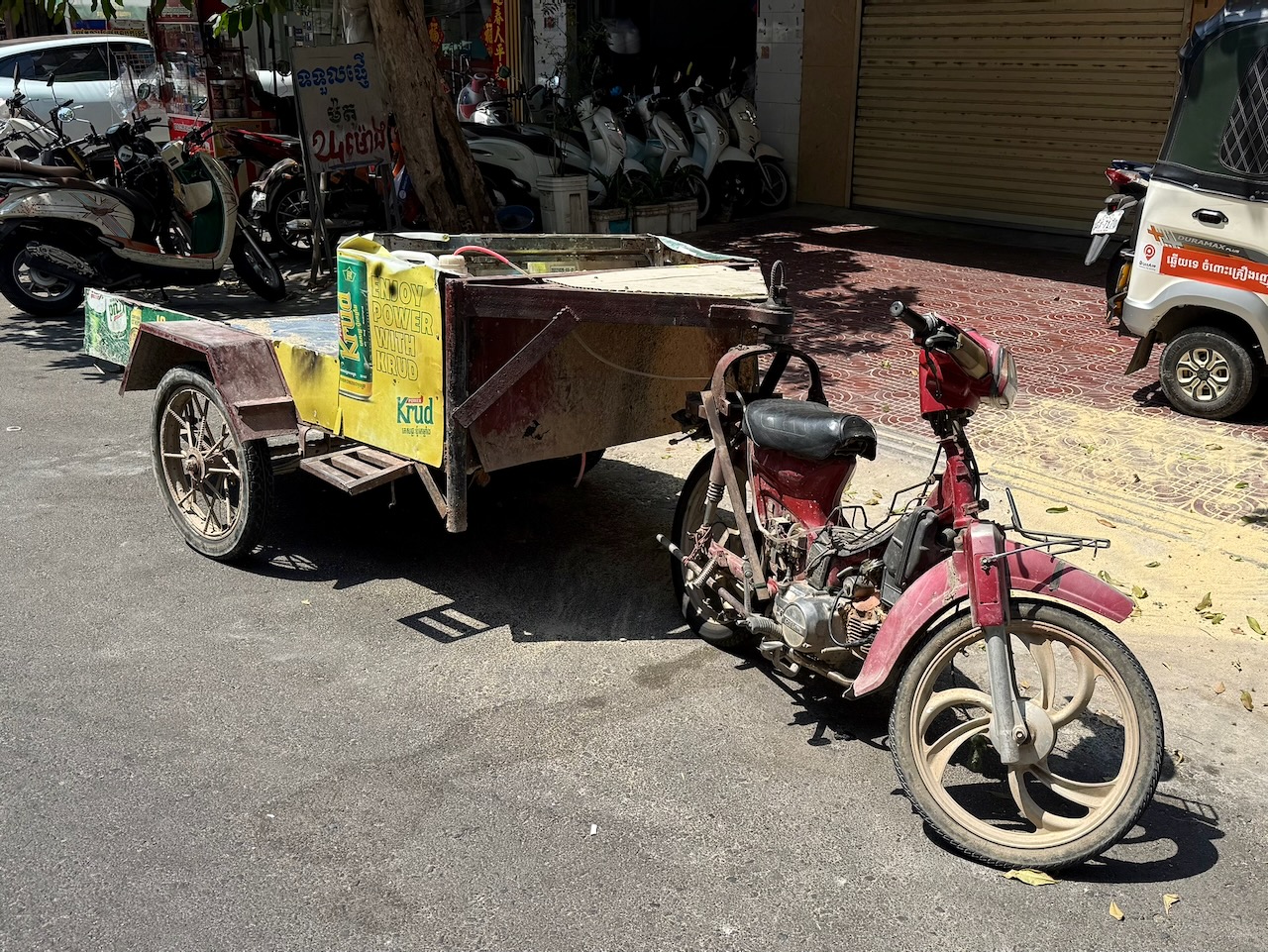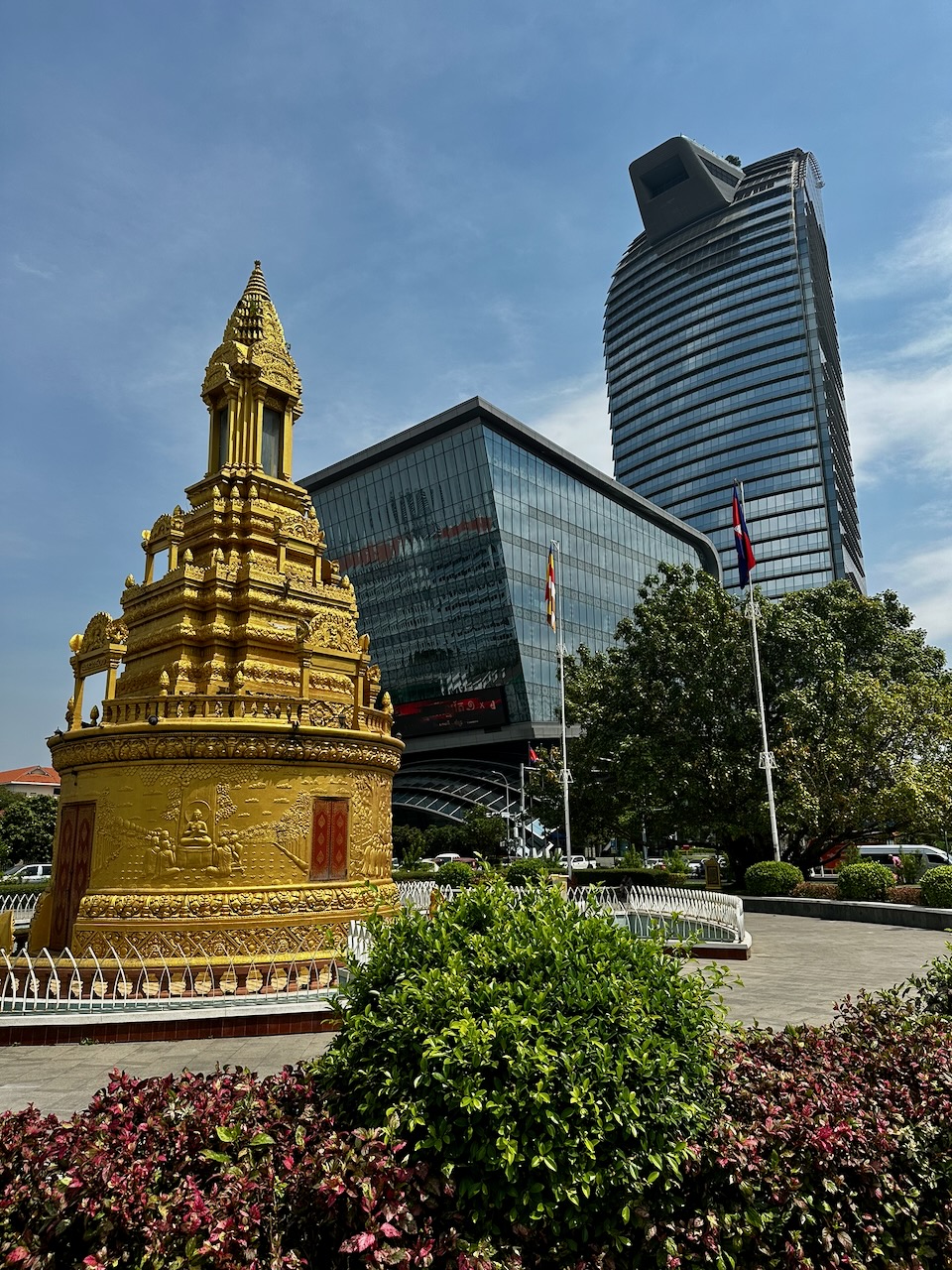 Das Sosorol Museum befindet sich fast gegenüber unserem Hotel, es zeigt die Entwicklung des Geldes in Kambodscha. Interessant ist, dass vor dem Angkor-Reich Münzen existierten, aber während der Angkor-Zeit kein Geldhandel stattfand. Die Ausstellung ist sehr gut gemacht und die kurzen Videos sind informativ. Trotzdem ist die Fülle der Informationen überwältigend, und nach einer Stunde sind wir nicht mehr aufnahmefähig. Wir wandern kurz durch die Extra-Ausstellung Into the Light. Die Fresken der Silberpagode sind leider zerstört, aber der Fund einer Kiste voll Negativen brachten Fotos dieser Kostbarkeiten an den Tag. Die Fotos wurden für die Ausstellung aufbereitet.