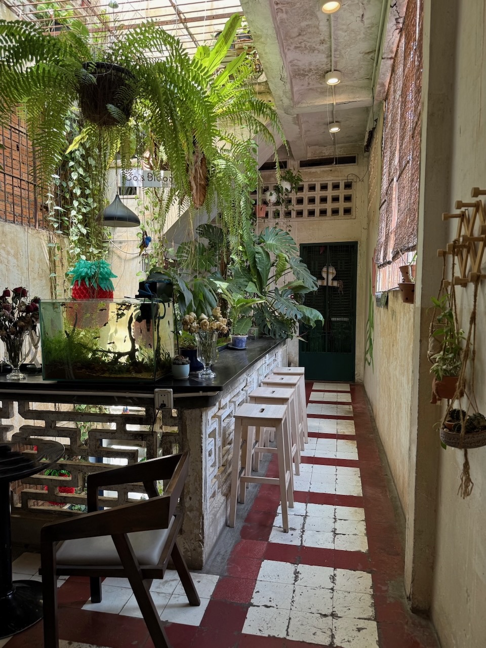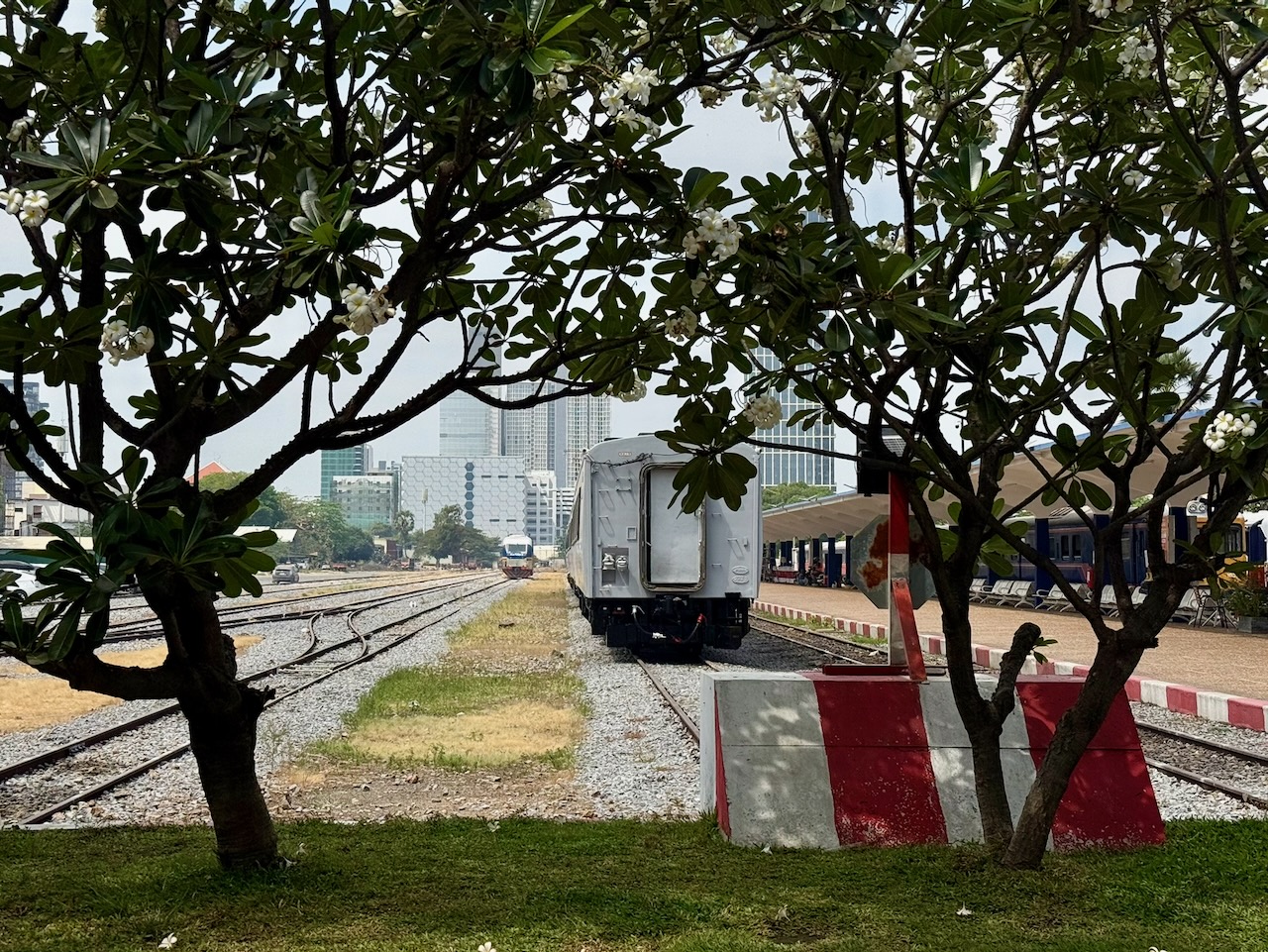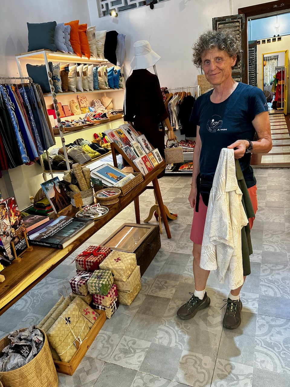 Mit dem Tuktuk fahren wir zum Bahnhof, einem schönen Art Deco Gebäude aus dem Jahr 1932. Von hier gehen wir zum Co & Bloom Café für einen Mango Smoothie. Das Café ist in zweiten Stock, im ersten findet man den Kleiderladen Domlei, mit hier entworfenen und hergestellten Kleidern. Barbara findet zwei schöne Blusen und eine Hose, die gleich vor Ort angepasst wird.