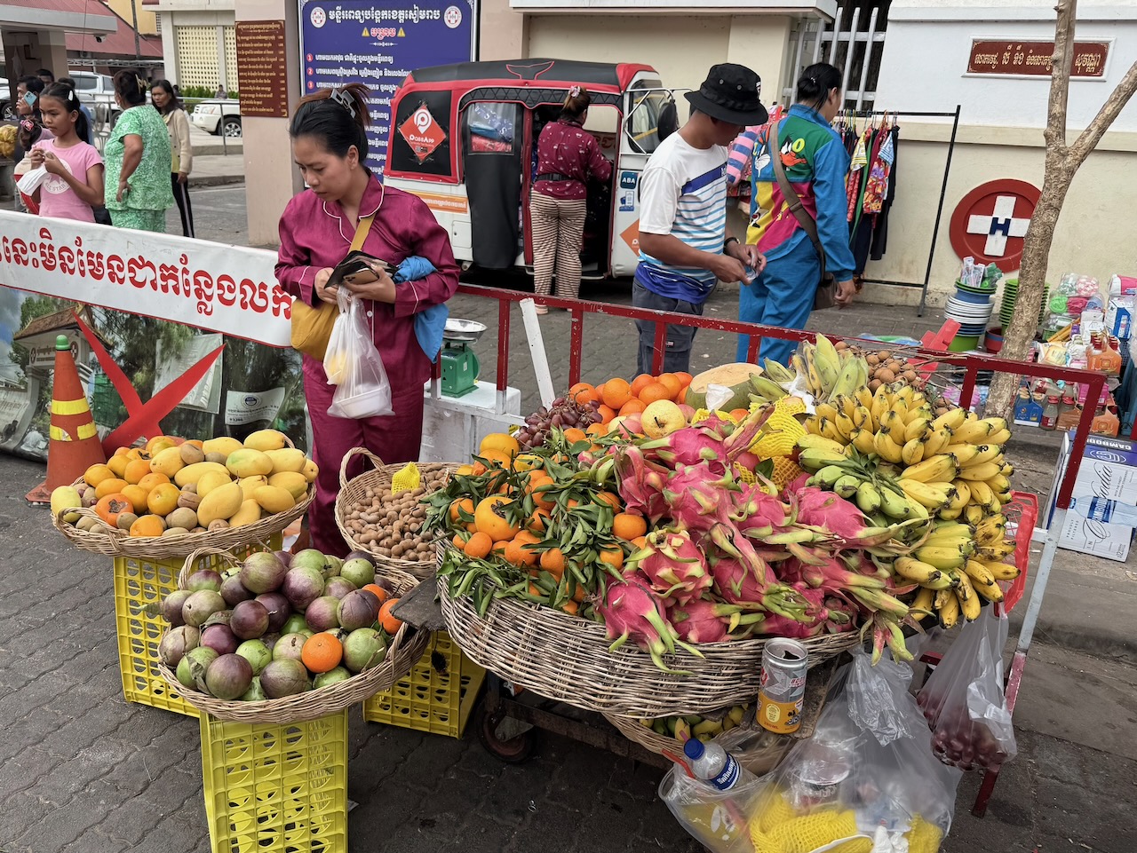 Wir spazieren zum Fruchtladen, den ich vom letzten Mal kenne und kaufen getrocknete Mangos und Cashews, dann spazieren wir durch den Markt. Ein Tuk Tuk bringt uns zurück zum Hotel.