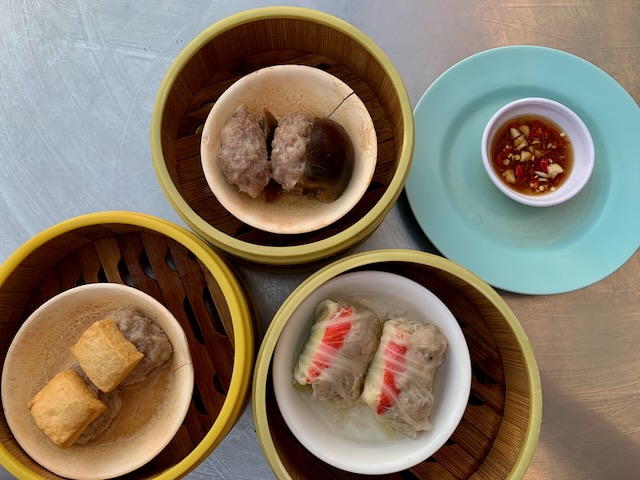 Aber auch das geht dann gut, als Schweizer braucht man kein Visum, wenn man nicht mehr als 15 Tage bleibt. Das Gepäck ist auch schon bereit. Ich kaufe mir beim Ausgang gleich eine SIM Karte für 15 Tage mit 2 GB Daten pro Tag, die kostet 4 $. Am Bancomat hole ich Kip, jetzt bin ich zum ersten Mal Millionär (2’000’000 Kip kosten mit Gebühren 85 CHF). Am Schalter für den City Bus kaufe ich ein Billett in die Stadt, der Preis ist 40’000 Kip (1.65 CHF). Um 14.30 kommt der Bus, neben dem Fahrer hat es eine Schaffnerin die sich vorzüglich um die Kunden kümmert und alle unterstützt, damit sie auch an der richtigen Haltestelle zu ihrem Hotel aussteigen. Ein toller Service. Ich steige an der Haltestelle A3 aus und muss noch 400 m zu Fuss gehen bis zum Azalea Park View Hotel. Ich beziehe mein Zimmer, schaue mir das Fitnesszentrum und den Pool (auf dem Dach) an und gehe dann spazieren. Zuerst Richtung Mekong, der hat sich aber in der Trockenzeit etwas weit von der Strasse entfernt, sodass ich nicht zum Fluss gelange. Darum gehe ich wieder stadteinwärts, esse ein Stir Fried und an einem Stand Dim Sum, das sind kleine Snacks in Form von Teigtaschen mit unterschiedlicher Füllung. Etwas ähnliches wie Kanom Krok probiere ich auch noch, es ist aber nicht süss, sondern salzig mit Fischgeschmack. Mein Weg zurück zum Hotel führt mich durch schmale Strassen mit abenteuerlichen Hütten.