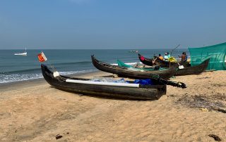 Ich ziehe meine Laufschuhe an und renne quer über die Vypin Insel zum Valappu Beach. Das sind nur 2 km, also nicht weit. Am Strand hat es einige Fischer und sonst niemanden. Man kann sicher dem Strand entlang weit laufen.